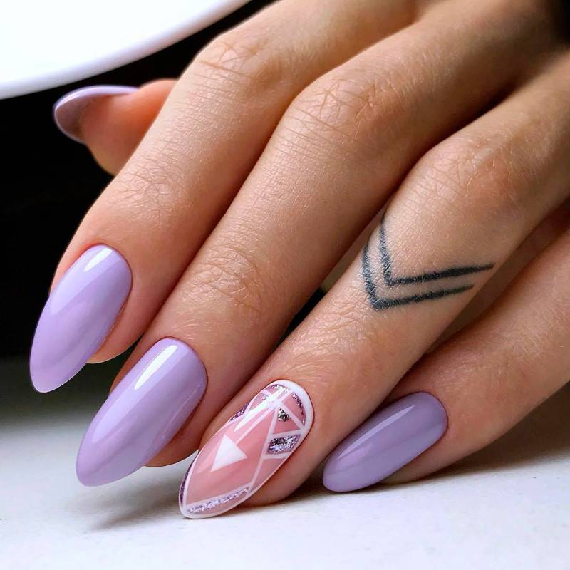 - голубой и сиреневый, а на одном ноготке – пара цветных линий.