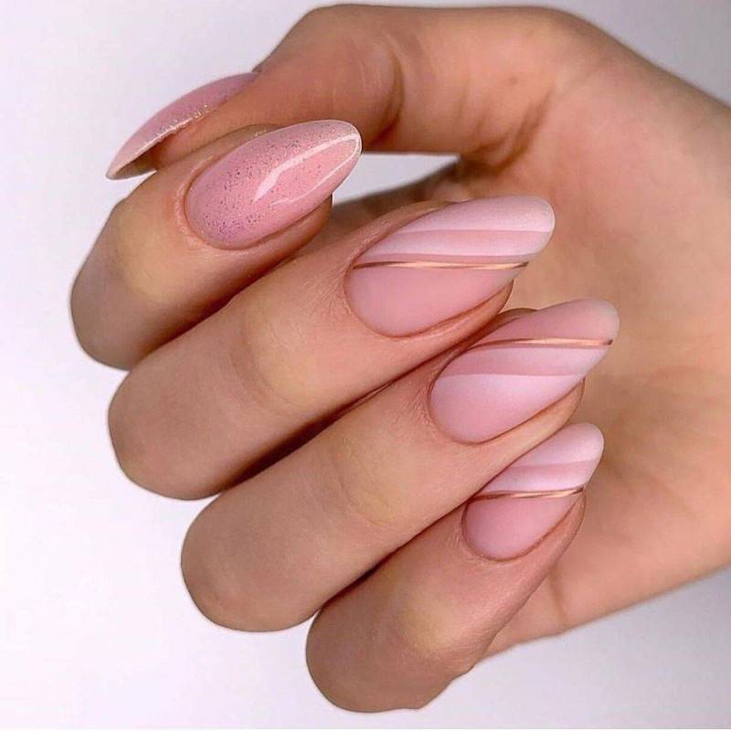 Этот дизайн миндальных ногтей в 2023 году популярен с глянцевым топом и с матовым.