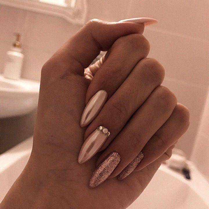 Форма ногтей миндалевидной формы выгодно сочетается с пастельными цветами и с разнообразными стразами, блестками и яркими акцентами. Миндалевидная форма элегантная и нежная, а в комбинации с различным дизайном может стать идеальным вариантом для любого мероприятия. Особенно хорошо подойдет для классического и романтического стиля.