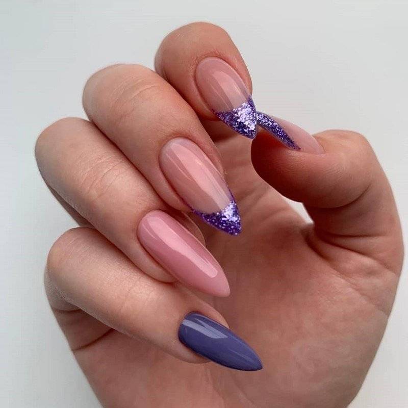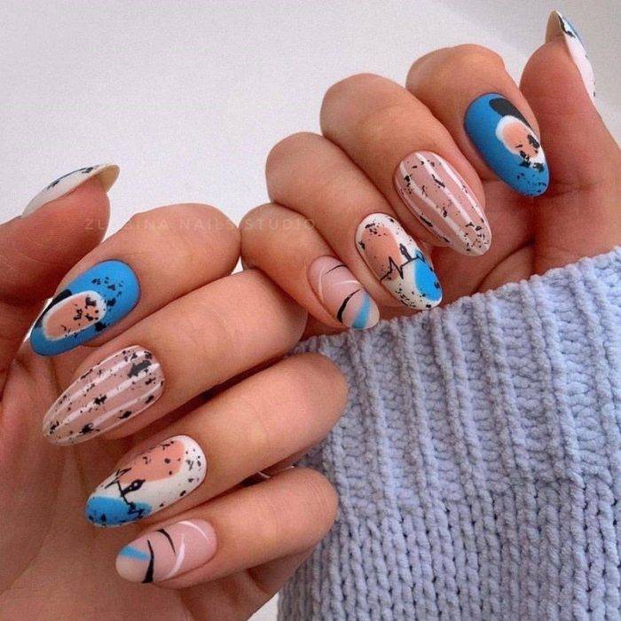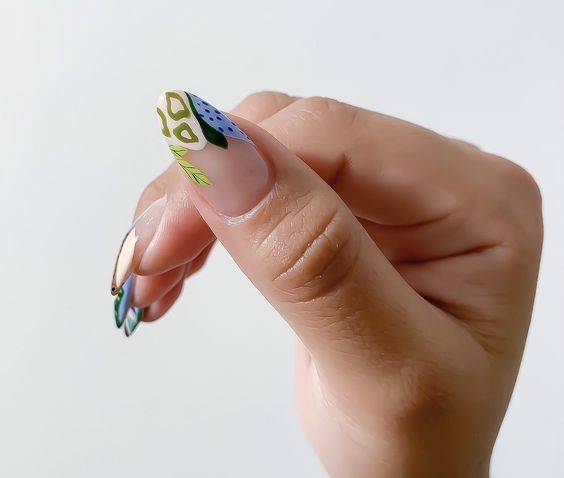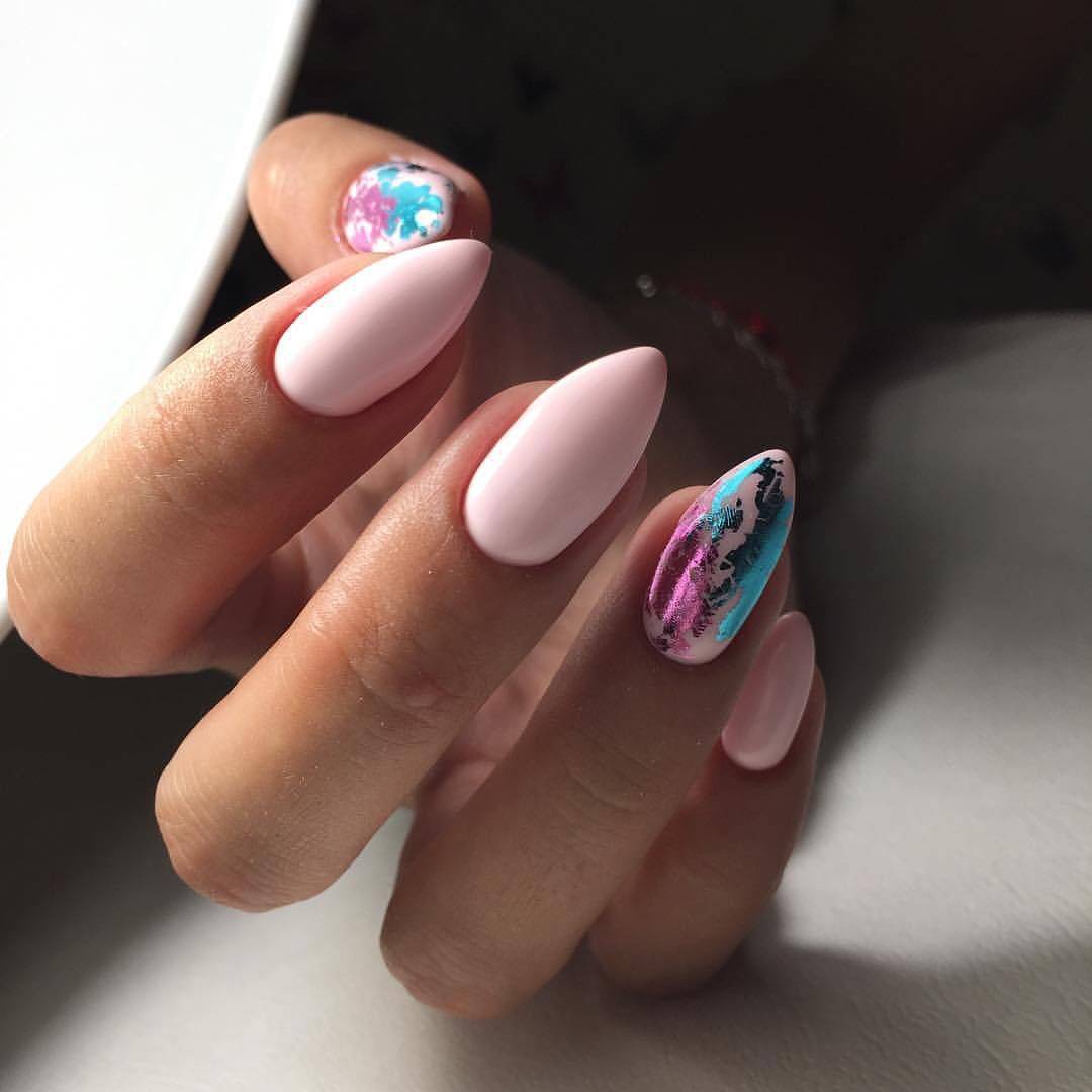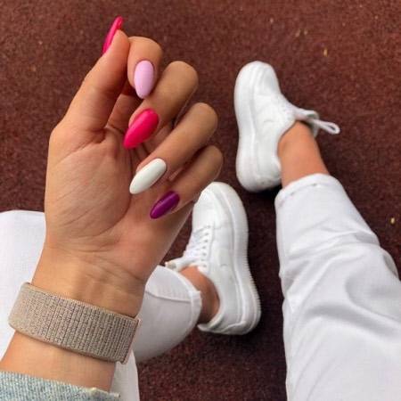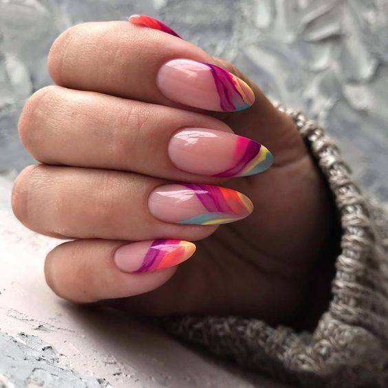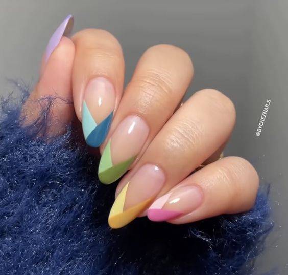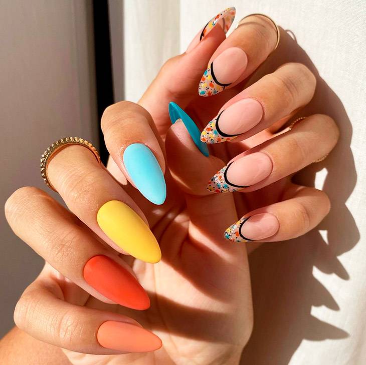 Разноцветный маникюр: тренды на форму миндаль 2023