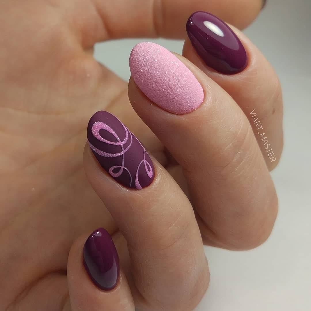 Нейл-арт в ярком цвете фуксия с вязаным акцентом и глиттером – это смелое и яркое сочетание. “Вязка” добавляет текстуру и глубину, а глиттер придает маникюру праздничный блеск.