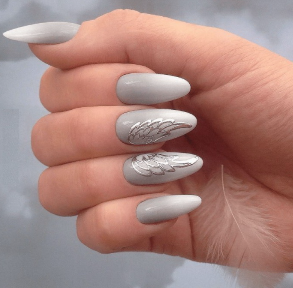 Новинки трендов зимнего сезона 2022-2023 набирают популярность уже с осени. Многие мастера взяли на вооружение особенности маникюра и применяют их в дизайне. Например, металлические детали в маникюре хорошо смотрятся на длинных и коротких ногтях. Сияния металлизированных деталей мастер добивается, применяя следующие технологии: