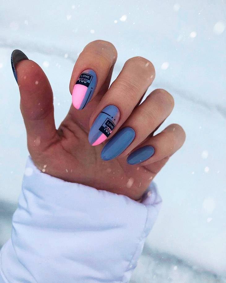 Разноцветные ногти в сочных оттенках конфет Skittles – одна из самых ярких тенденций прошлого лета. В зимнем сезоне эта модная тенденция модернизируется: полироли спокойных пастельных тонов перемежаются с темными цветами – серым, черным, синим, бордовым, винным.