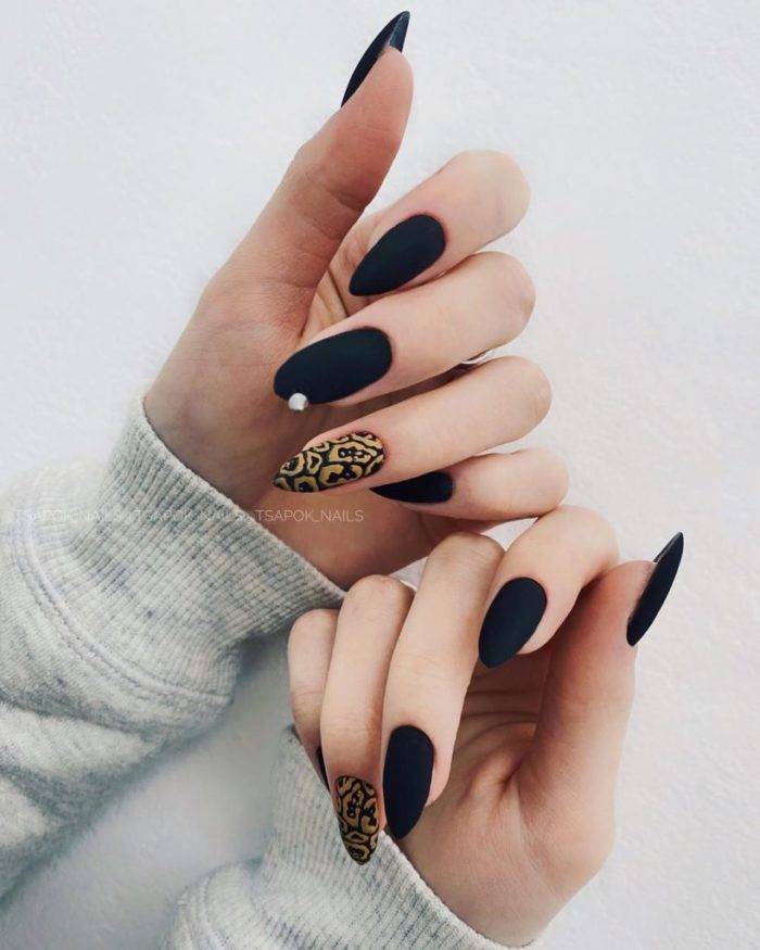 Хищный принт обычно украшает один ноготь, поскольку большее его количество может перенасытить маникюр, вызывая раздражение.