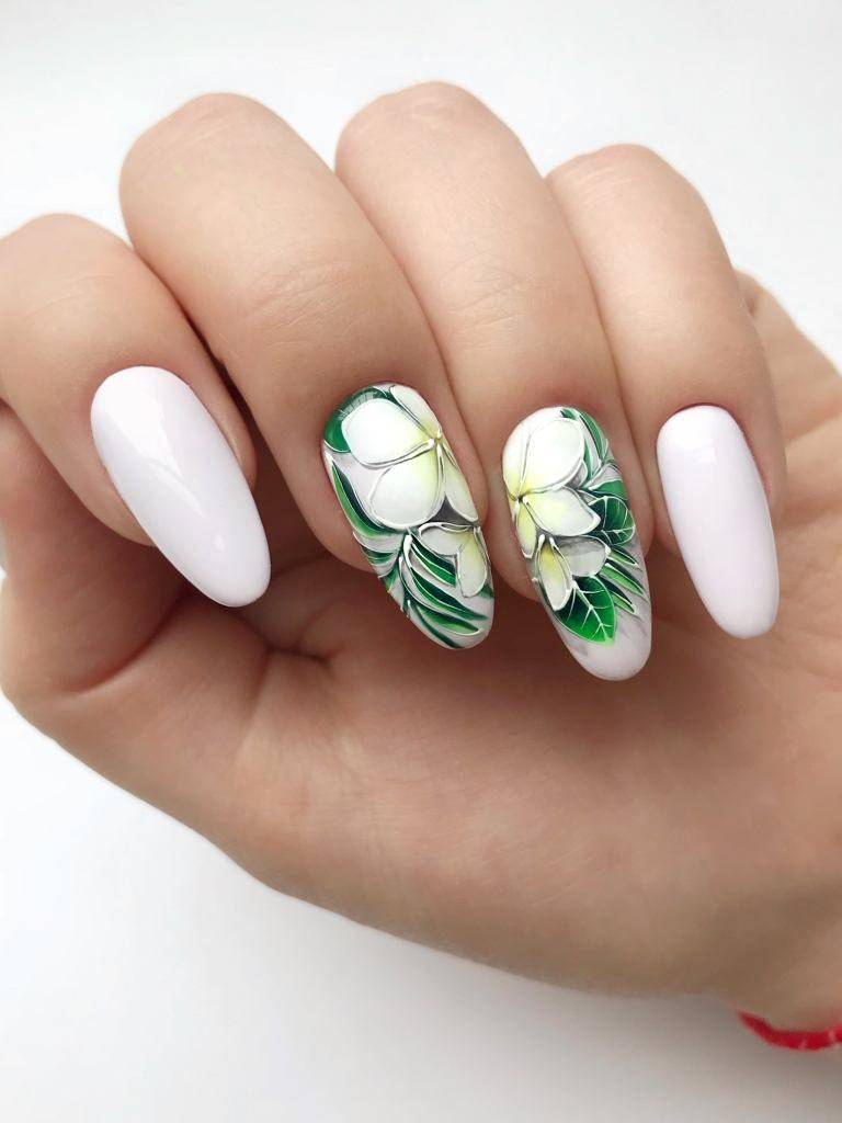 Миндальная форма ногтей является самой универсальной для летнего сезона. Разнообразные виды дизайна, оттенки и декор — все это прекрасно смотрится на таком маникюре. В подборке идей вы найдете множество вариантов оформления на любой вкус.