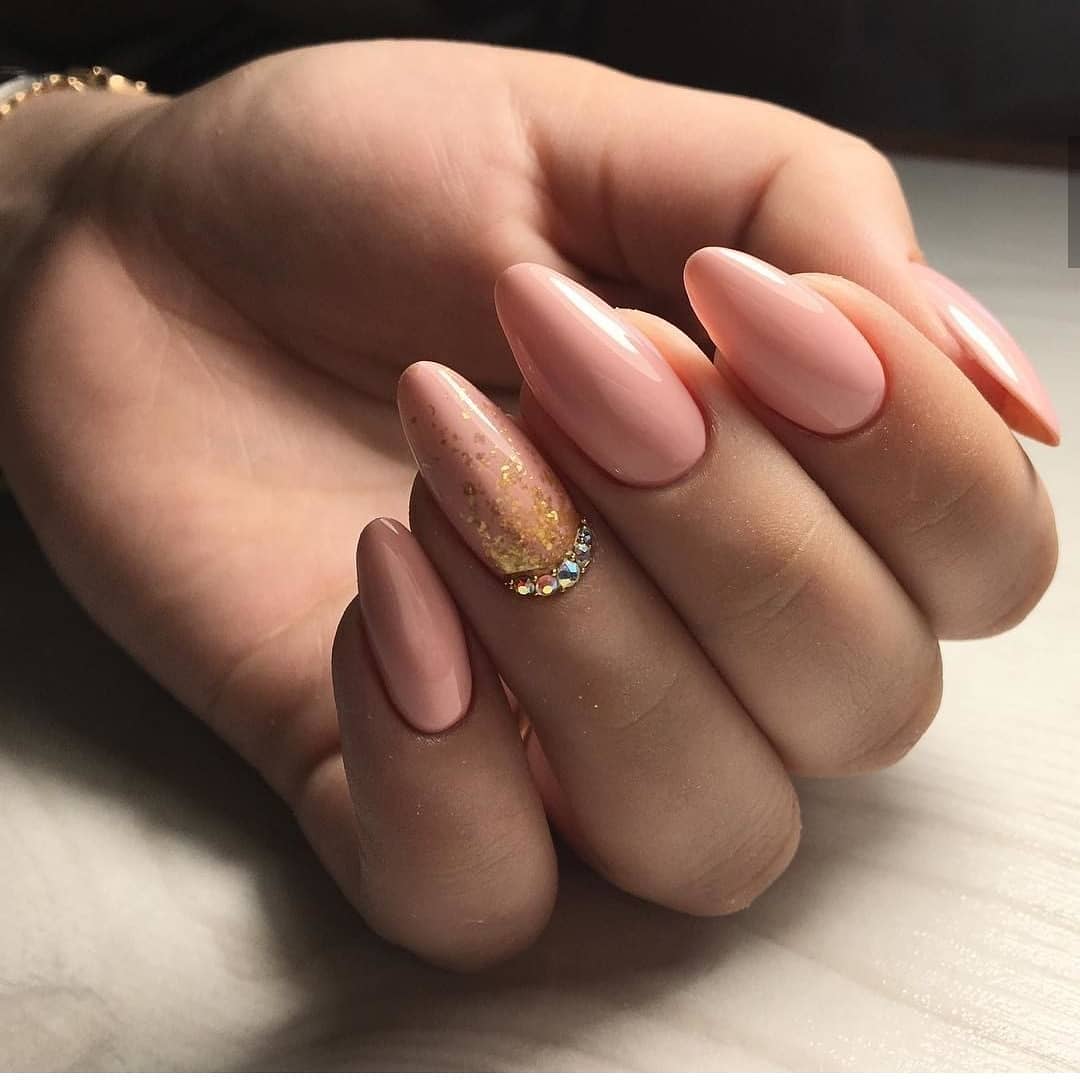 Современный маникюр на миндальные ногти вовсе не обязательно должен быть выполнен с дизайном. Все чаще девушки выбирают для себя сдержанное однотонное покрытие и украшают его декором. В зависимости от вида и количества деталей маникюр может смотреться совершенно по-разному.