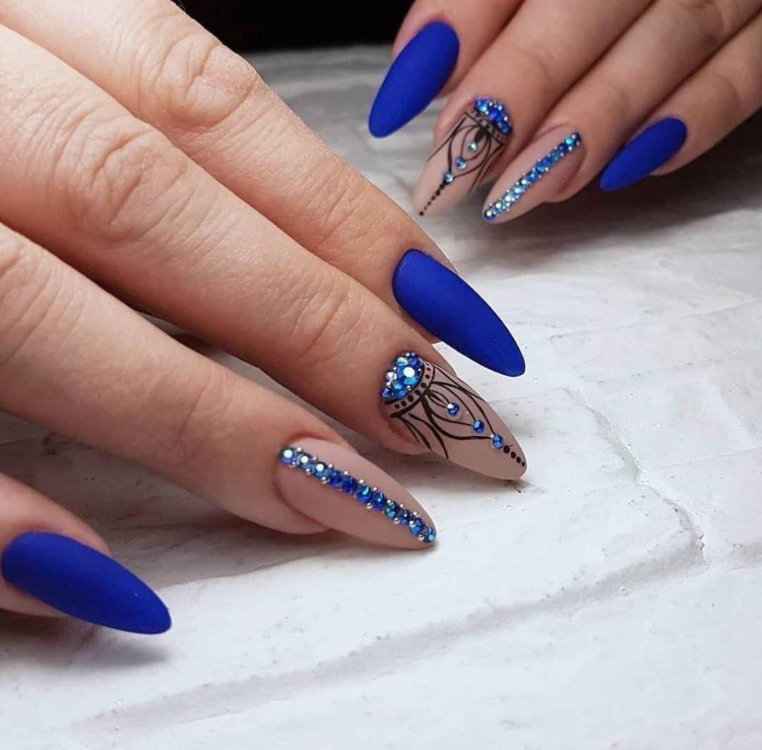 Сочетание трендовых цветов и оттенков станут решающим звеном подбора дизайна. От насыщенности расцветки будет зависеть возможное уместное количество страз, рисунков и подобных элементов для декорирования миндальной формы ногтей.