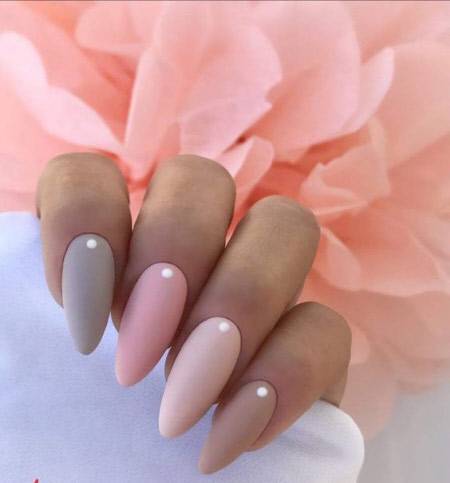 - серое с розовым сочетание на ногтях миндалевидной формы;