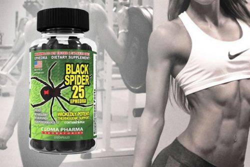 Black Spider 25 Ephedra, называемый ранее Черная Вдова, представляет собой жиросжигатель, рассчитанный на профессиональных атлетов, которые принимают участие в соревнованиях по бикини, бодифитнесу и бодибилдингу.