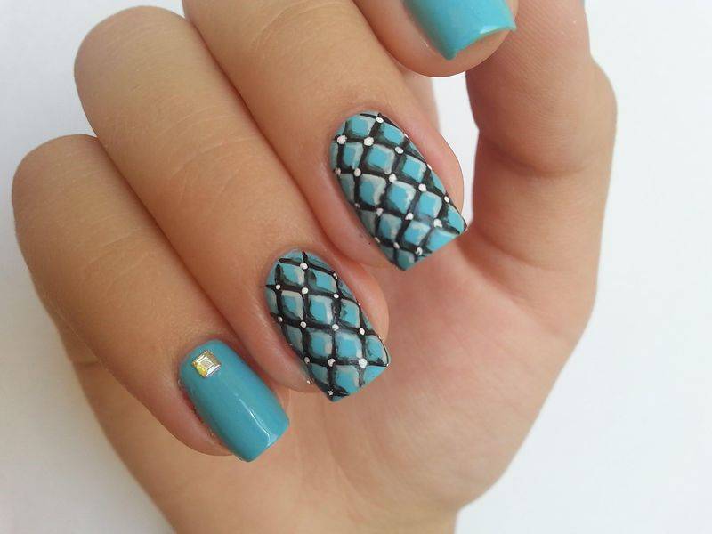 Дизайн можно дополнить стразами и бульонками, но важно не перегрузить ногти декором