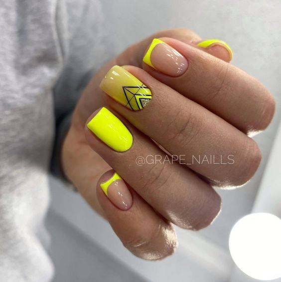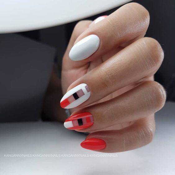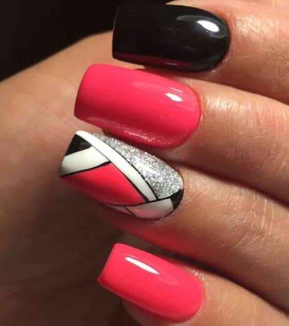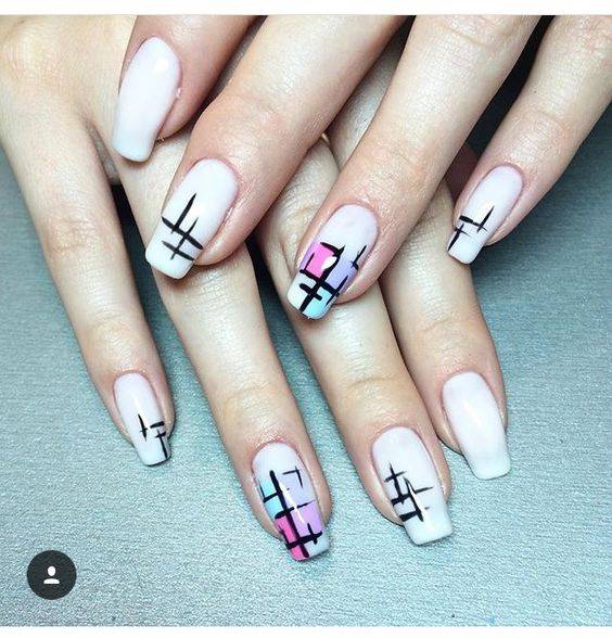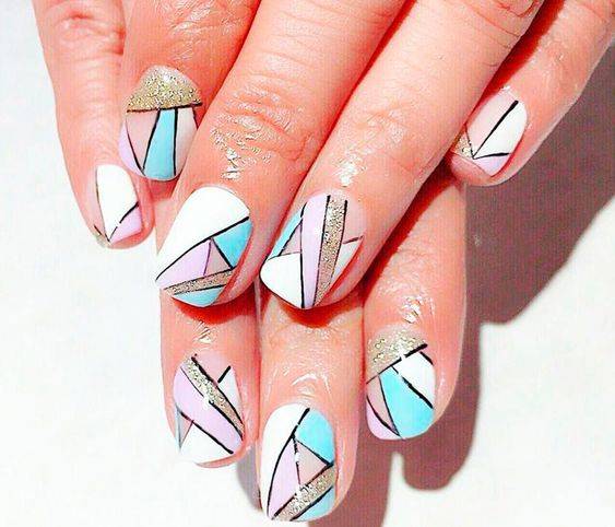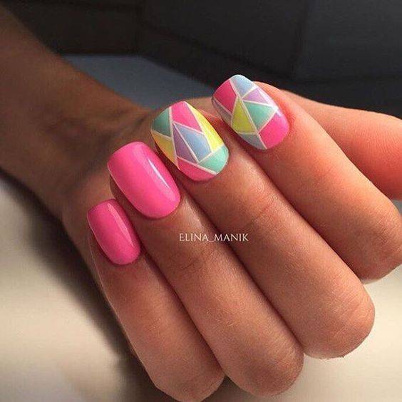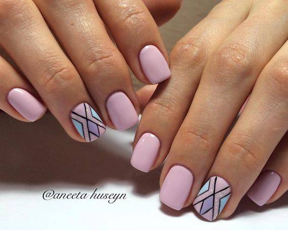 Модный маникюр геометрия на короткие ногти идеально подходит для повседневной жизни, впишется в привычный базовый гардероб. Более яркий и насыщенный дизайн ногтей станет прекрасным дополнением к праздничному образу.