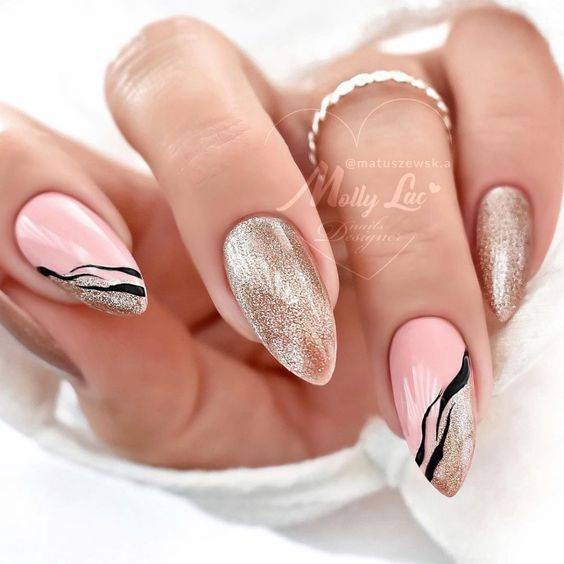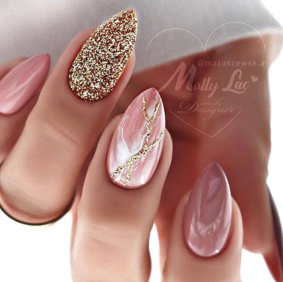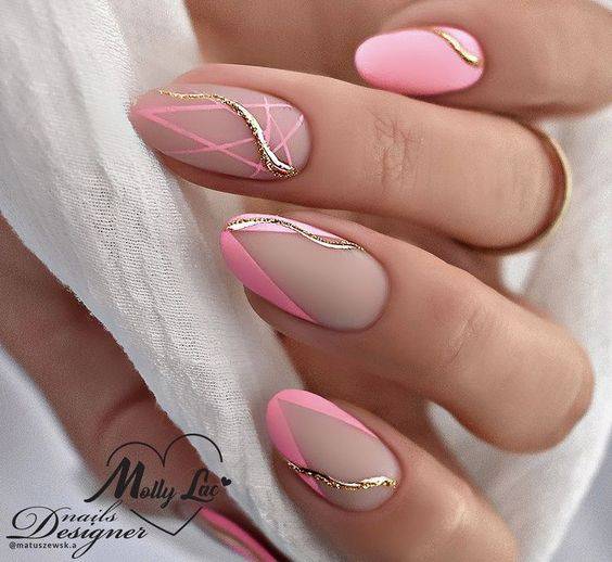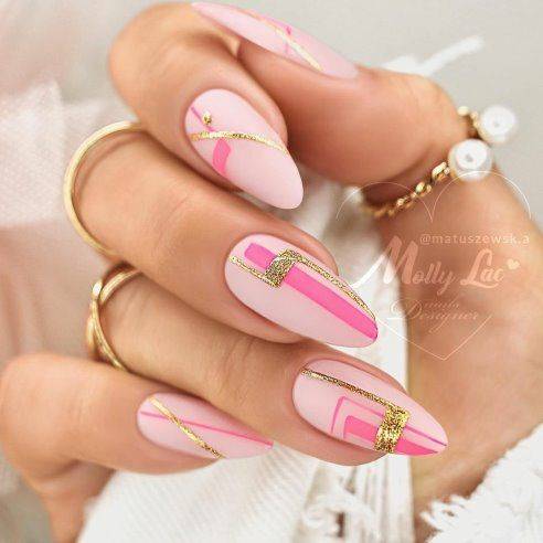 Розовый цвет ногтей в сочетании с золотом – это прекрасный выбор для создания нежного и романтического образа. Это сочетание подойдет для свадебного макияжа, а также для повседневного использования.