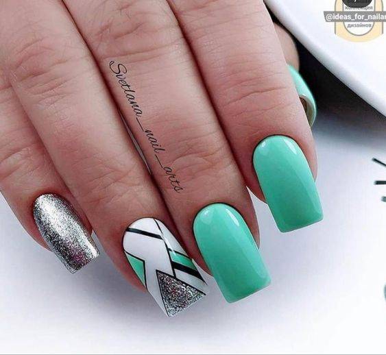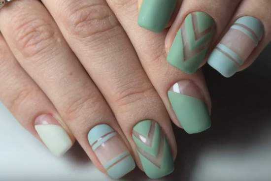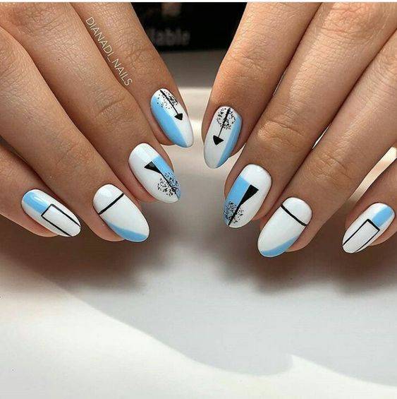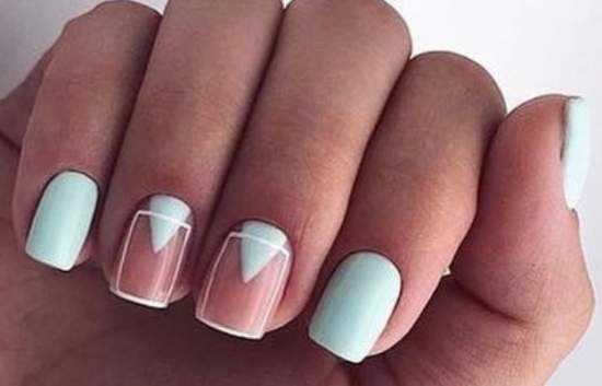 Однако сложное не исключает простого. Тем более, что самая простая геометрия на ногтях сегодня в тренде. Используя простые техники, геометрию на ногтях можно сделать дома. Приведём несколько примеров.