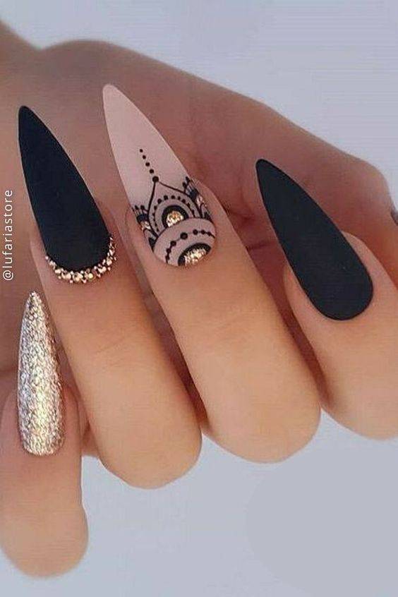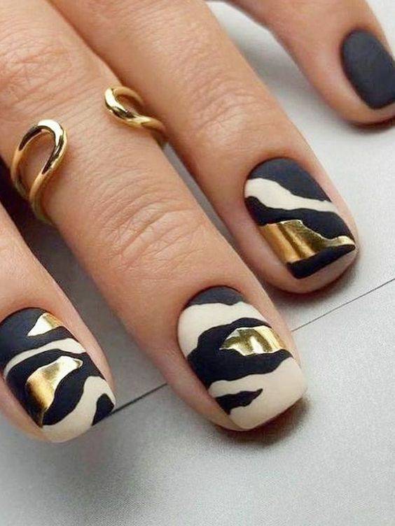 На сегодняшний день существует огромное количество техник для создания красивых дизайнов черно-золотистого маникюра.