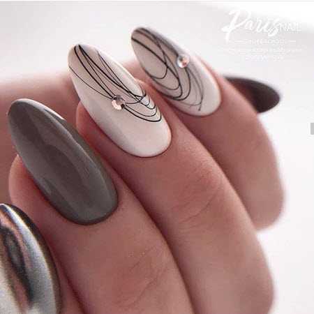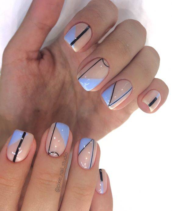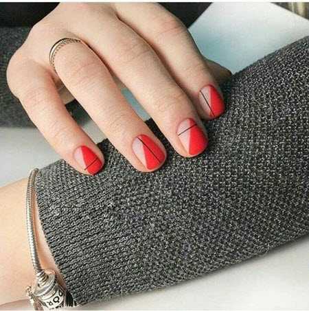 - Демократичность маникюра с линиями и фигурами как раз и объясняет его невероятную популярность: можно использовать обычные лаки.