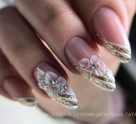 Французская техника по-прежнему остаётся в тренде. Если говорить о золоте, то оно может здесь быть как основой, так и небольшим элементом. Вариантов создаётся множество.