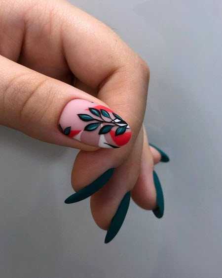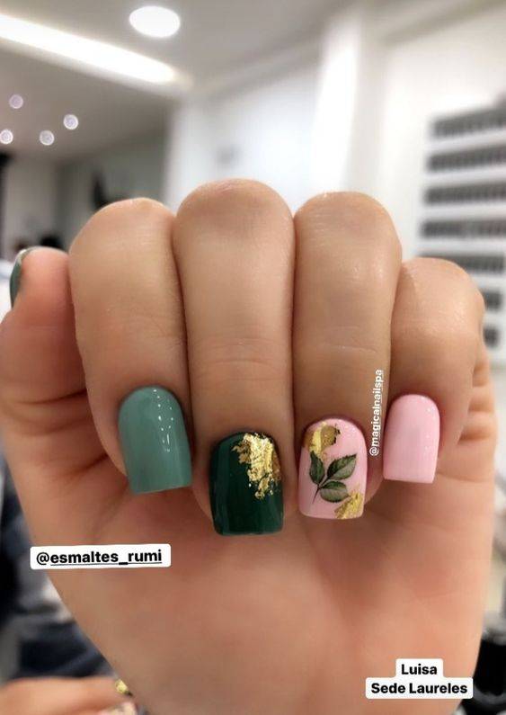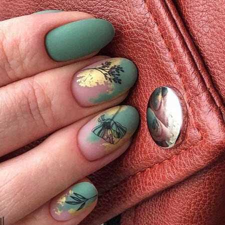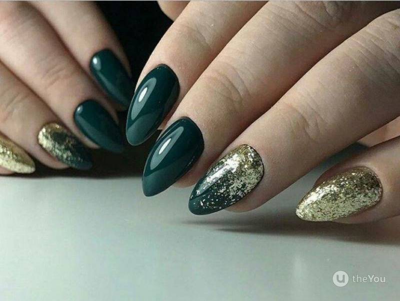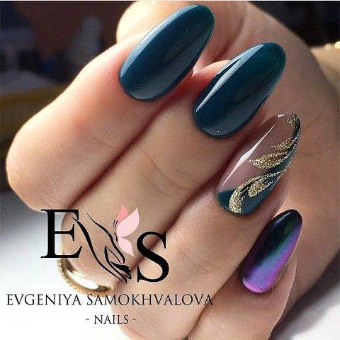 Зеленый цвет ногтей в сочетании с золотом – это очень яркое и стильное сочетание. Оно идеально подойдет для создания образа в стиле природы и гармонии.