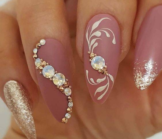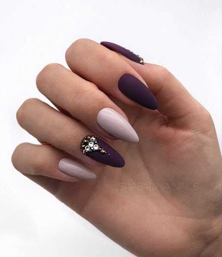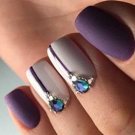 Маникюр с камнями просто шикарно смотрится в матовом исполнении, такой дизайн не оставит равнодушным никого. В осеннем маникюре сезона 2020 камни и стразы наносятся на ногтевую пластину в виде красивого узора на один-два пальца, или в виде мелких камушек на всю ногтевую пластину, тоже в виде акцента. Идеи для вдохновения, смотрите на фото ниже: