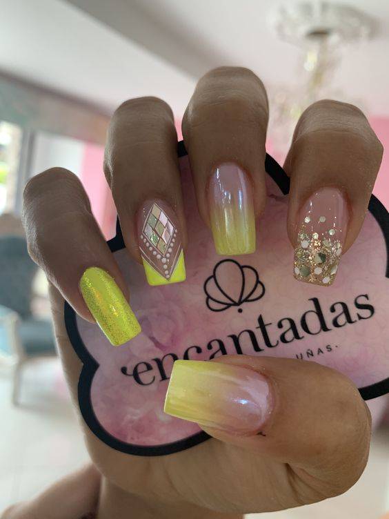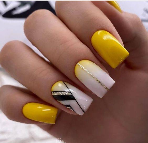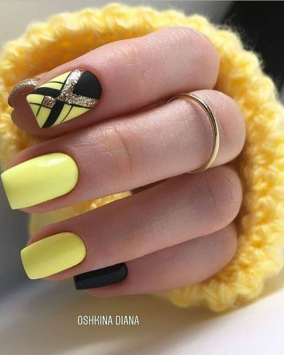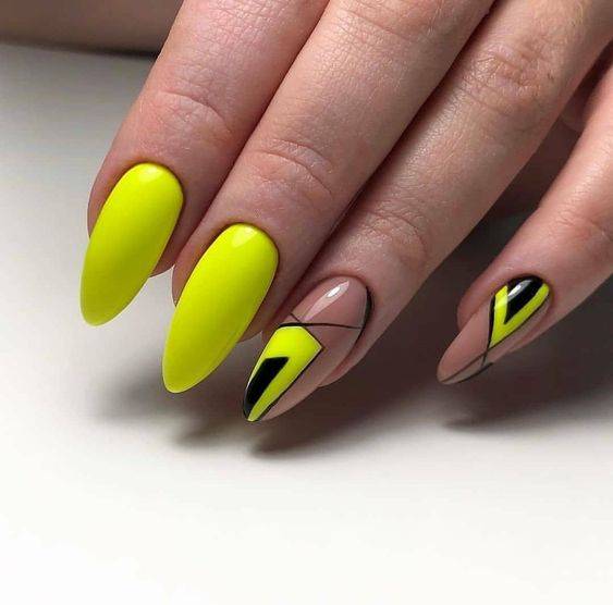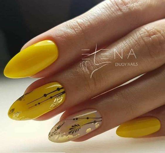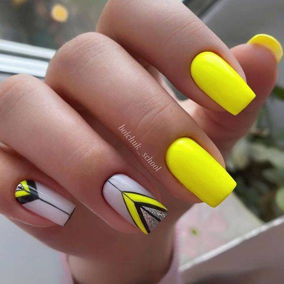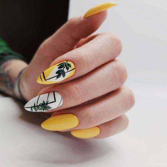 Яркий, сочный желтый цвет – маст-хев в мире нейл-арта 2020 года. Его преимущественно выбирают в летнем сезоне, поскольку он может подчеркнуть хорошее настроение и в целом отлично дополняет образ. Рисунки в виде фруктов, морского побережья и флористические мотивы идеально смотрятся на таком фоне.