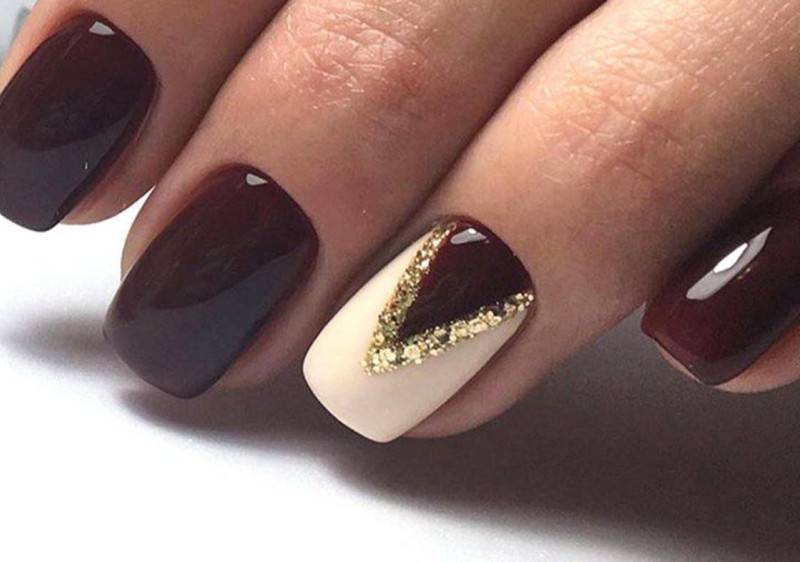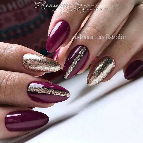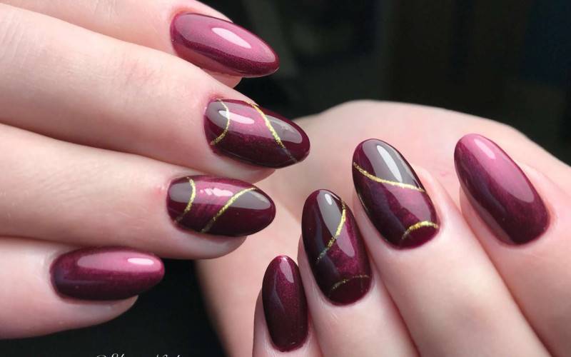 Бордовый цвет ногтей в сочетании с золотом – это очень стильное и эффектное сочетание. Оно идеально подойдет для создания элегантного и загадочного образа.