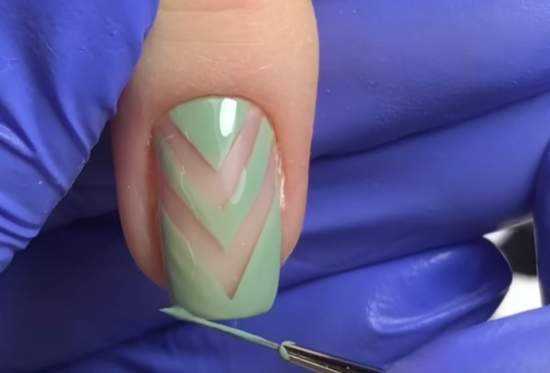 Технику используют для выполнения дизайна в стиле «минимализм». Стиль, который надолго задержится в тренде, если не сказать «навсегда». Это — и утончённый вкус, и лёгкость, и благородство. Для исполнения графики можно брать любые «инструменты» — втирку, полоски, просто золотое покрытие.