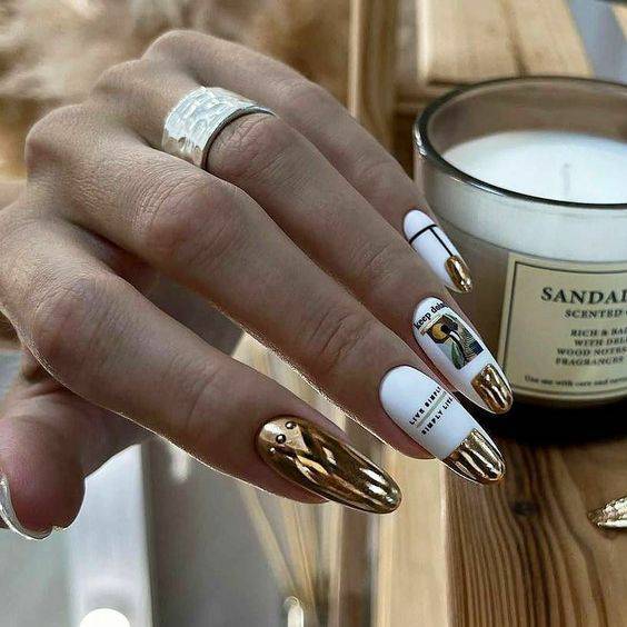 Лучшие идеи золотого маникюра с дизайном 2023: модные фото новинки