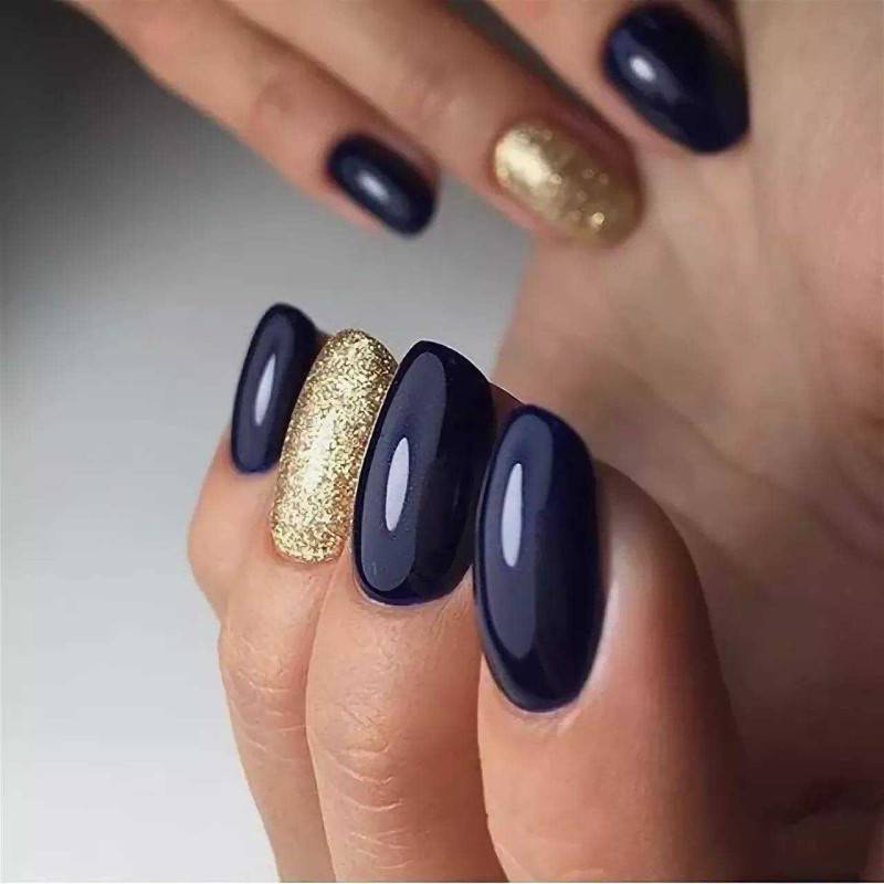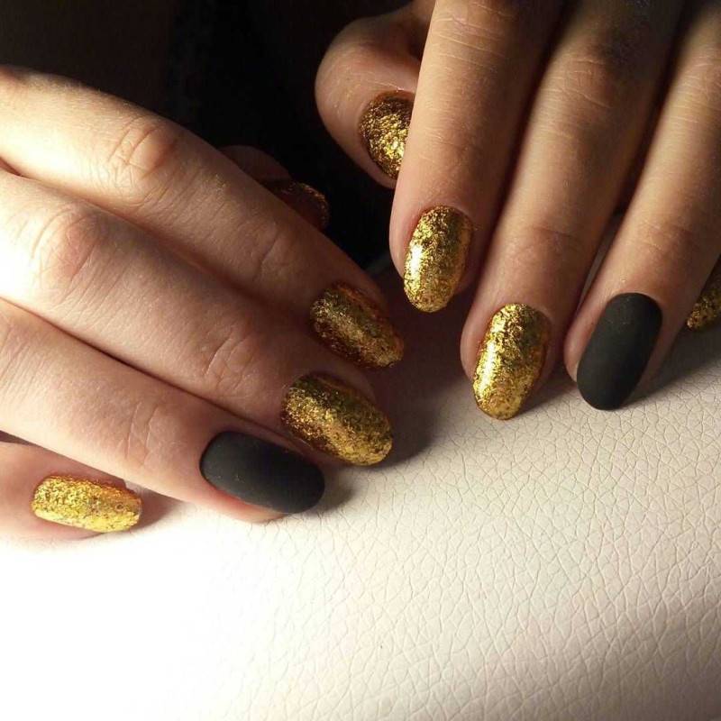 Черно-золотое оформление – это вариант не на каждый день. Гораздо более уместным он будет на вечернем мероприятии или празднике. Впрочем, многое зависит от интенсивности золотых деталей. Небольшие блестки на одном-двух ноготках прекрасно будут смотреться и в повседневной жизни.
