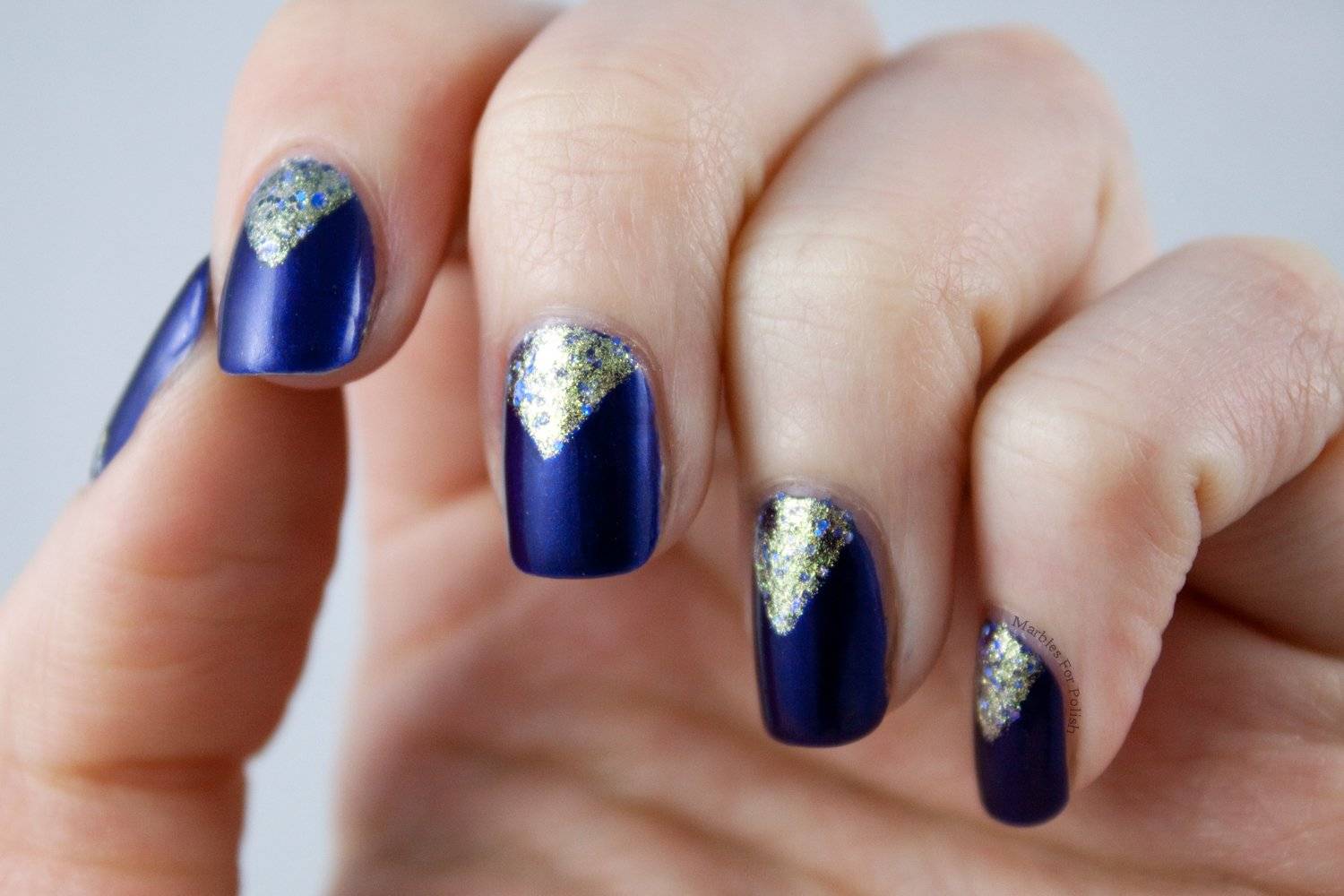 Сочетание данных двух оттенков встречается не слишком часто. Но тем не менее его выбирают преимущественно для вечеринок и посещения праздничных мероприятий. Также синий цвет прекрасно подходит на роль основы тематического зимнего дизайна. То есть различные снежинки, снеговики и сказочные персонажи на таком фоне выглядят особенно красиво. Золотистые блестки и стразы в данном случае часто дополняют общее оформление и являются наиболее уместным, оптимальным акцентом.