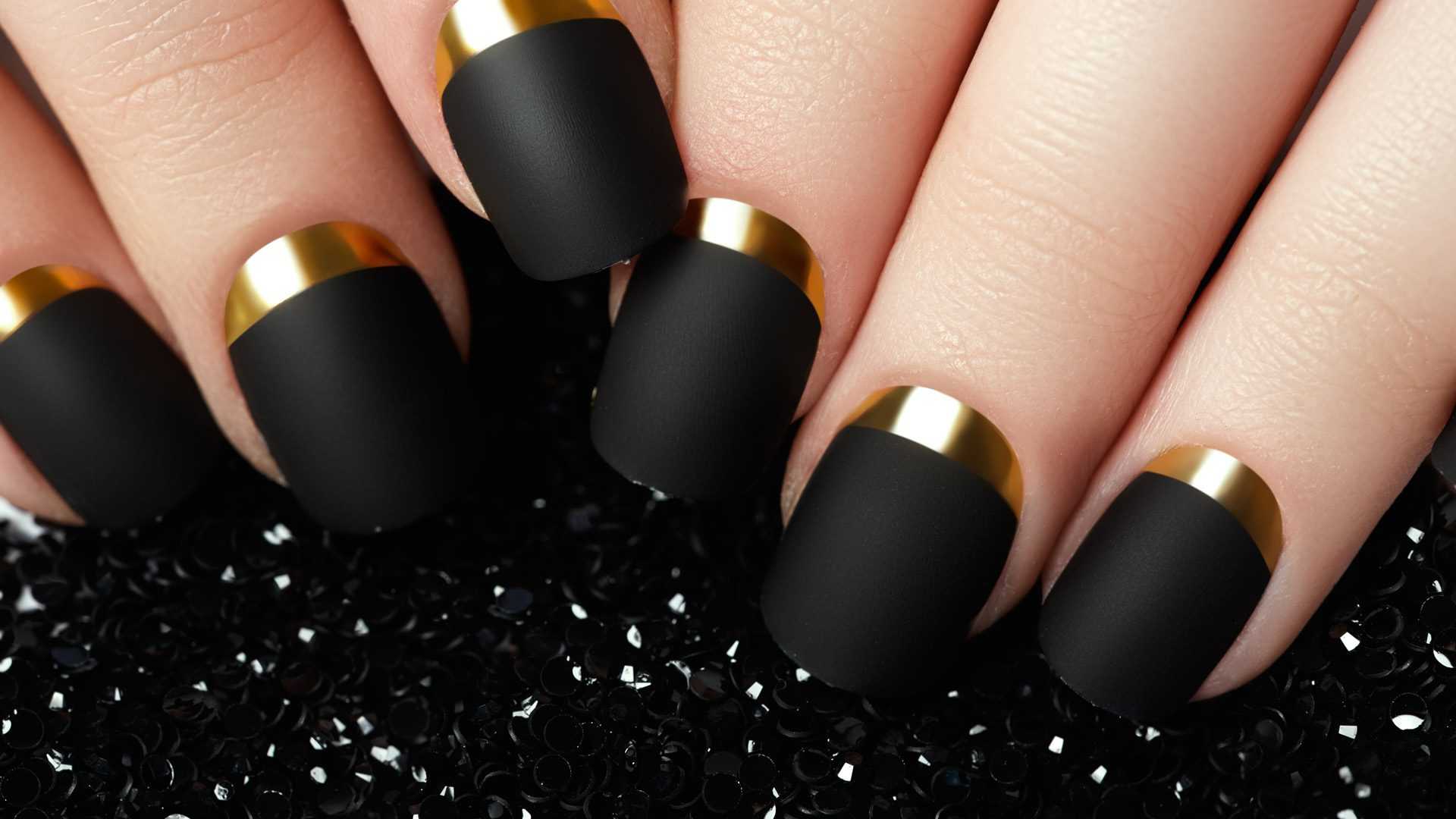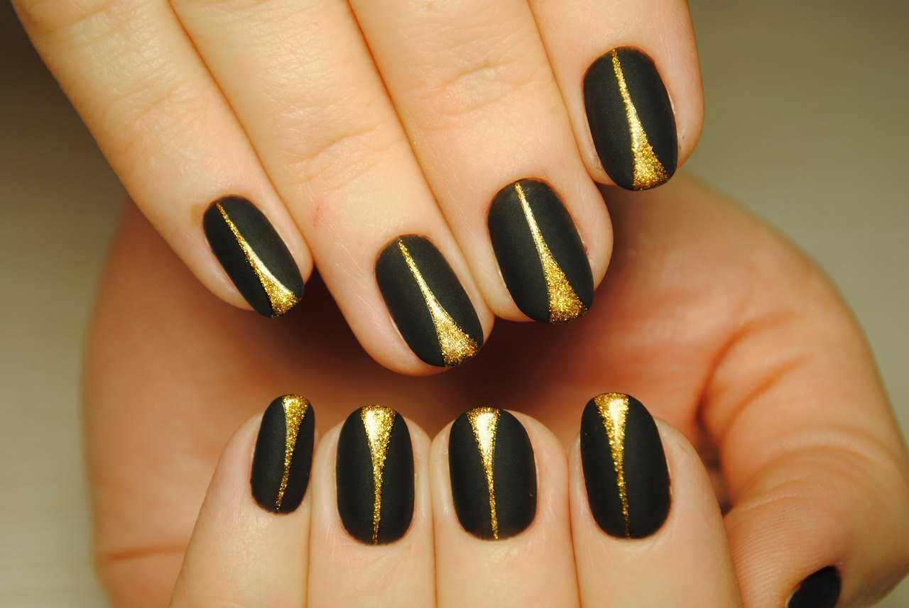 На каждый день можно рассмотреть вариант матового покрытия – здесь уместно будет смотреться матовая черная база, а два или три ноготка можно покрыть золотистым лаком.