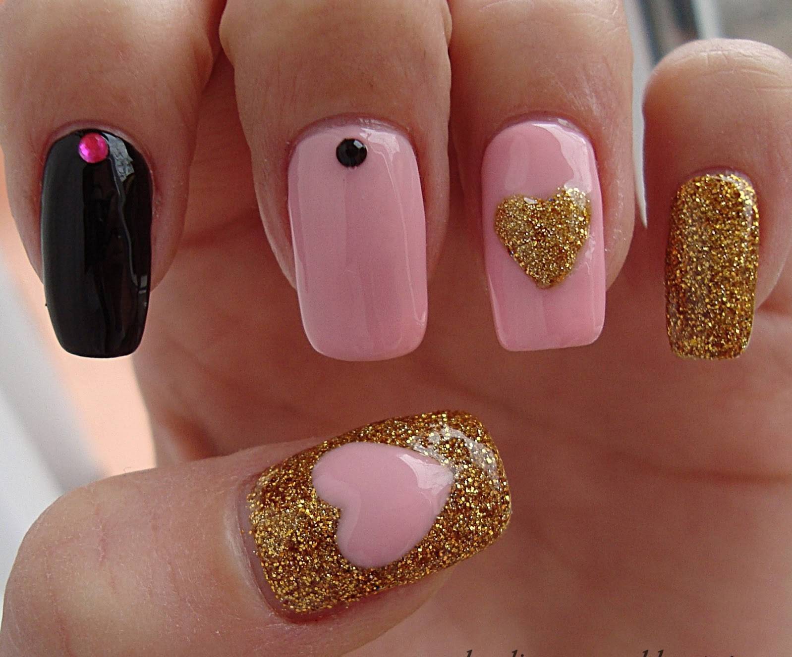 Черно-золотое оформление – это вариант не на каждый день. Гораздо более уместным он будет на вечернем мероприятии или празднике. Впрочем, многое зависит от интенсивности золотых деталей. Небольшие блестки на одном-двух ноготках прекрасно будут смотреться и в повседневной жизни.