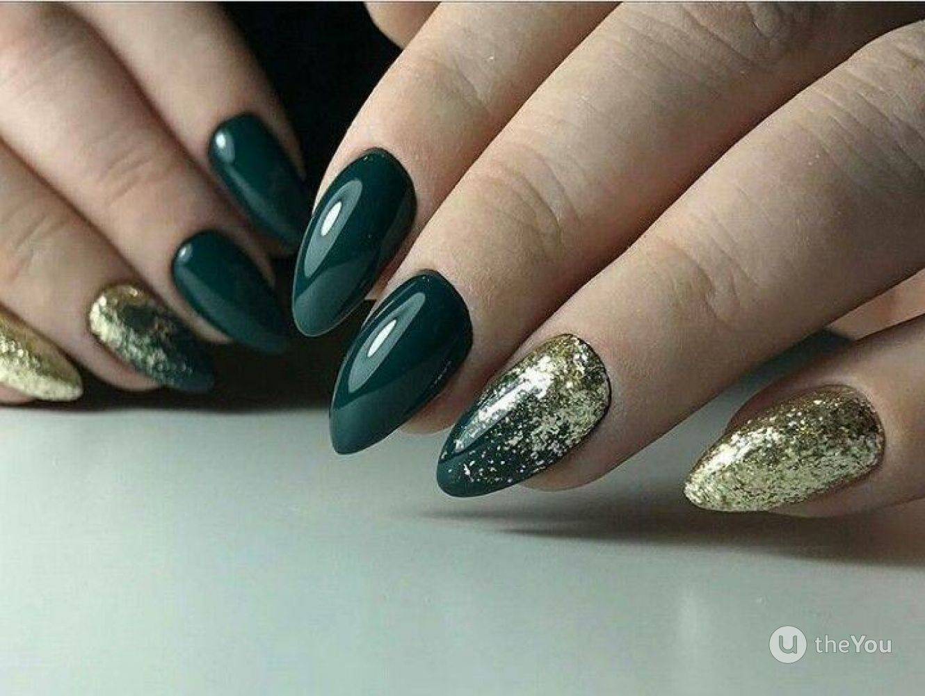 Зеленый цвет ногтей в сочетании с золотом – это очень яркое и стильное сочетание. Оно идеально подойдет для создания образа в стиле природы и гармонии.