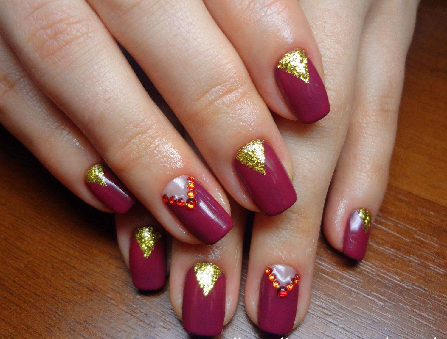 Бордовый цвет ногтей в сочетании с золотом – это очень стильное и эффектное сочетание. Оно идеально подойдет для создания элегантного и загадочного образа.