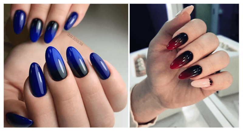 - Золотой градиент. Это очень эффектный вариант праздничного маникюра. Золотистый лучше не использовать как основу, лучше применять его в качестве расстановки яркого и броского акцента, выделения деталей.