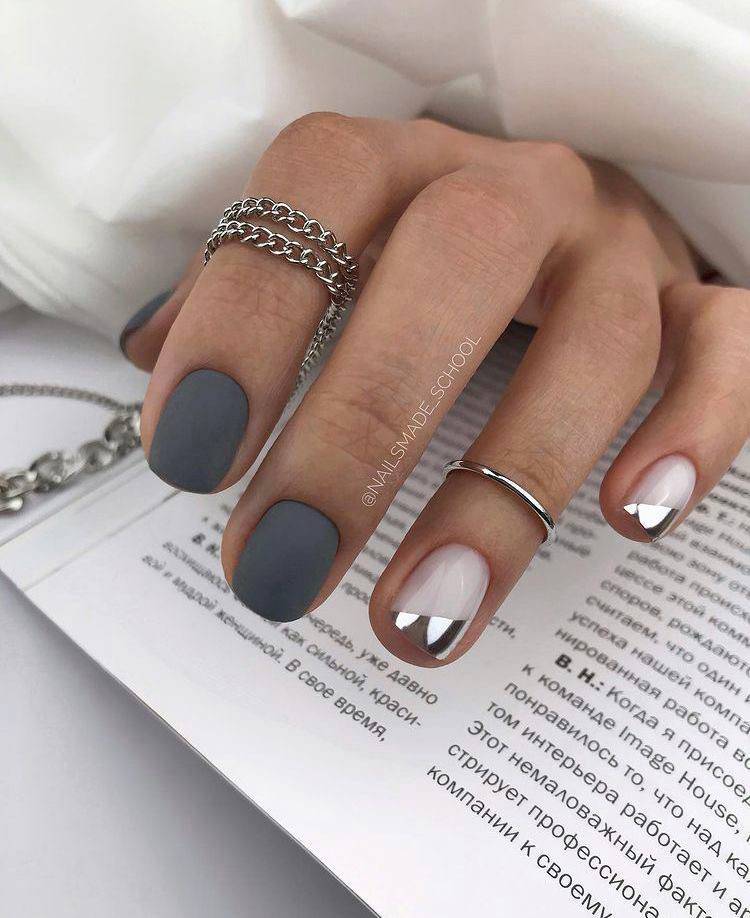 Серебро чаще служит ярким акцентом для других гель-лаков. Ведь этот тон универсален и как нельзя лучше подходит для зимы.