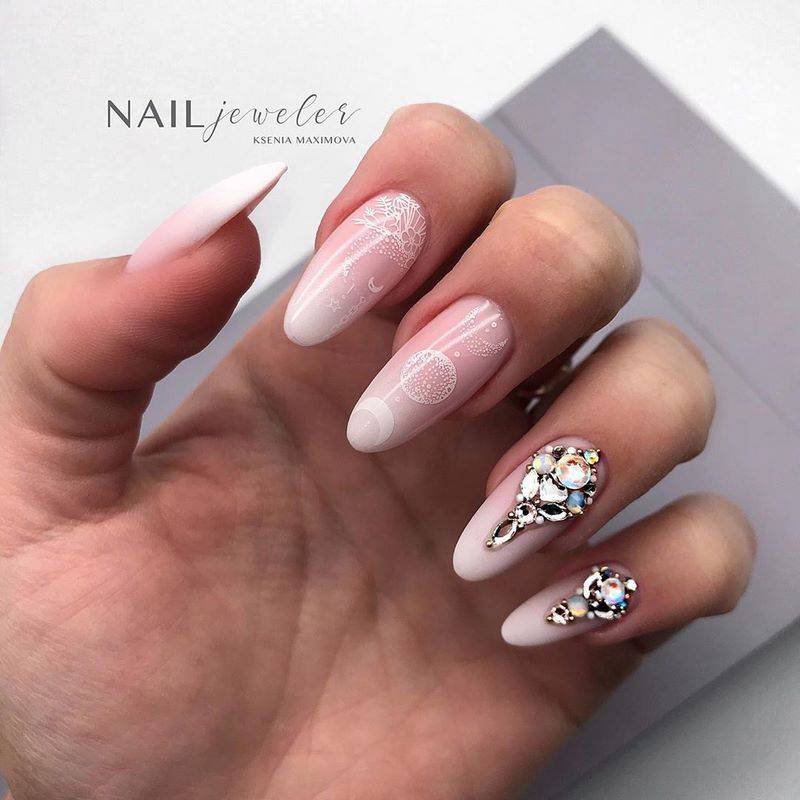 Основной плюс розового цвета — он подходит и для коротких, и для длинных ногтей миндалевидной формы.