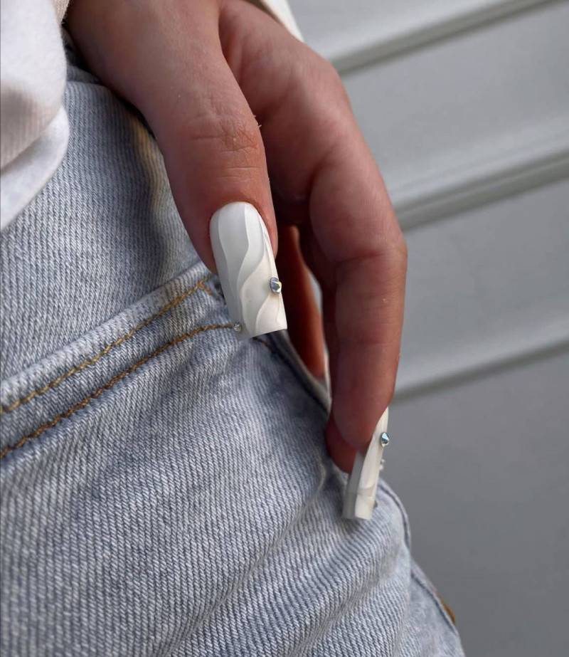 Еще один плюс белого новогоднего маникюра — этот оттенок подходит под любой цвет и стиль.