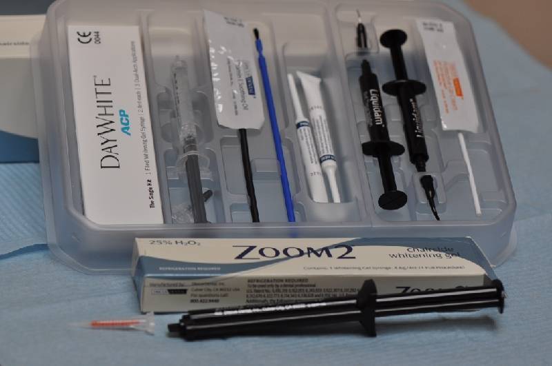 Когда производится отбеливание, то применяются реактивы и аппаратура от одного изготовителя. Это обеспечивает наибольшее сочетание компонентов между собой. Гель содержит в себе компоненты, которые активизируются при попадании в один спектр лампы Зум.