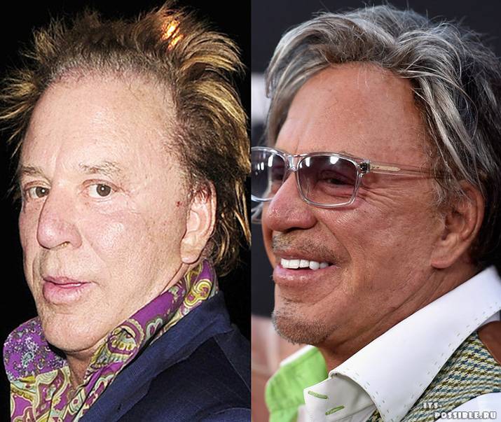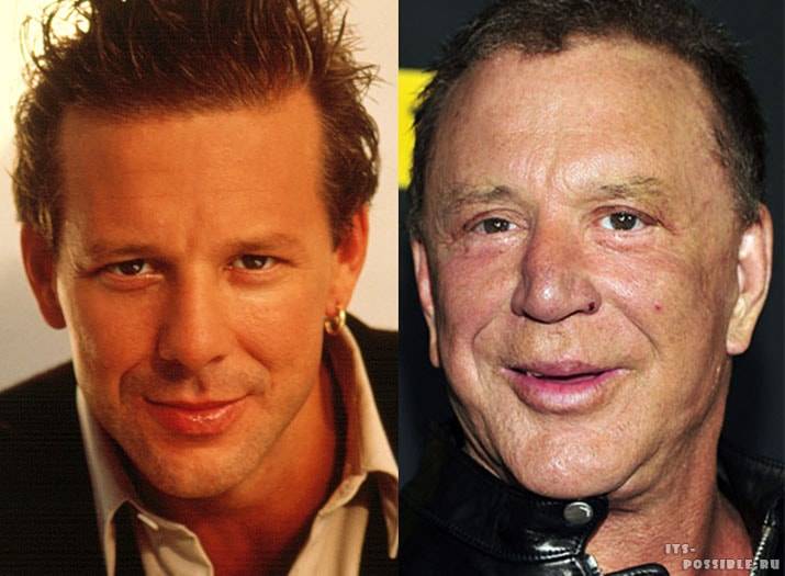 Американский киноактёр, сценарист, профессиональный боксёр из привлекательного и сексуального мужчины стал всеми неузнаваемым. Результаты шокирующей пластики на лицо, Микки полностью потерял свой первоначальный облик. Многочисленные операции, ботокс, круговая подтяжка сделали актера пародией себя.